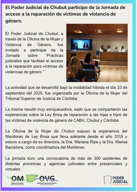 Informe sobre la implementación de la Ley Micaela en el Poder Judicial de Chubut